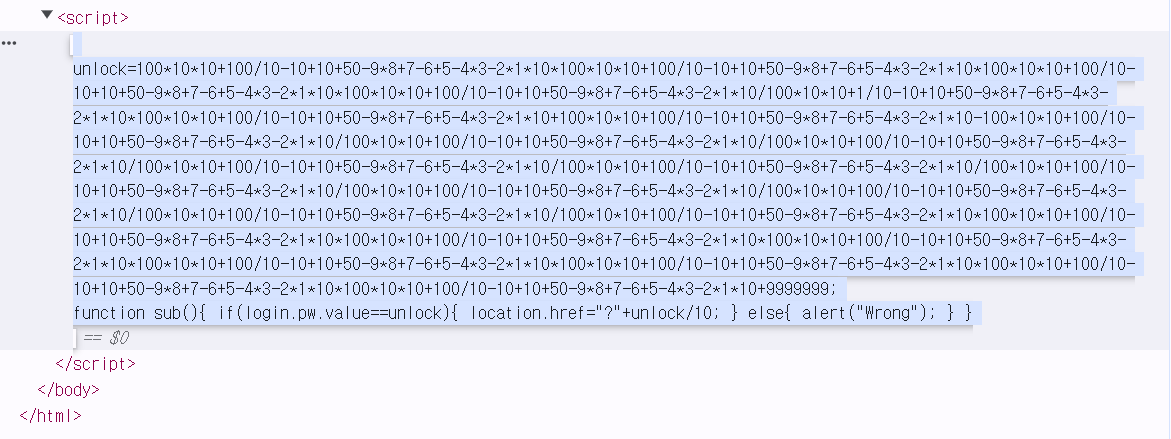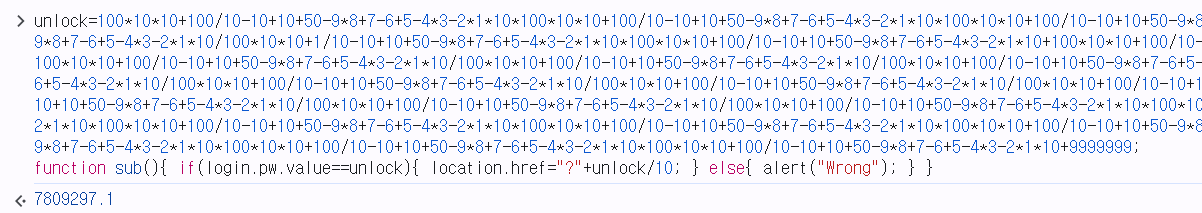 - ๋จผ์ ์ฝ๋๋ฅผ ๋ถ์ํด ๋ณด๋ unlock์ ๊ฐ๊ณผ ์ ๋ ฅ๊ฐ์ด ๊ฐ์ผ๋ฉด ๋ฌธ์ ๋ฅผ ํด๊ฒฐํ ์ ์๋ค๋ ๊ฒ์ ์์๋ค.